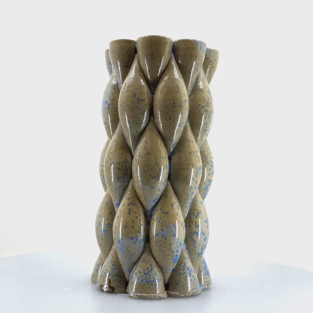 Realizată prin imprimare 3D din ceramică naturală și finisată manual, piesa îmbină precizia tehnologică cu sensibilitatea artizanală. Nuanțele sale calde de bej și gri sidefat reflectă lumina diferit în funcție de momentul zilei, aducând calm și profunzime oricărui spațiu.