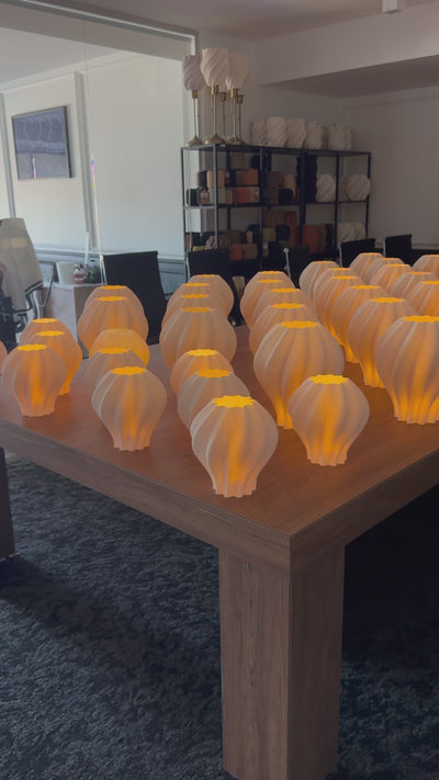 Sistemul de LED-uri reîncărcabile integrate transformă fiecare formă într-un corp de iluminat autonom, cu lumină caldă și difuză, menită să creeze o atmosferă poetică, relaxantă și elegantă.